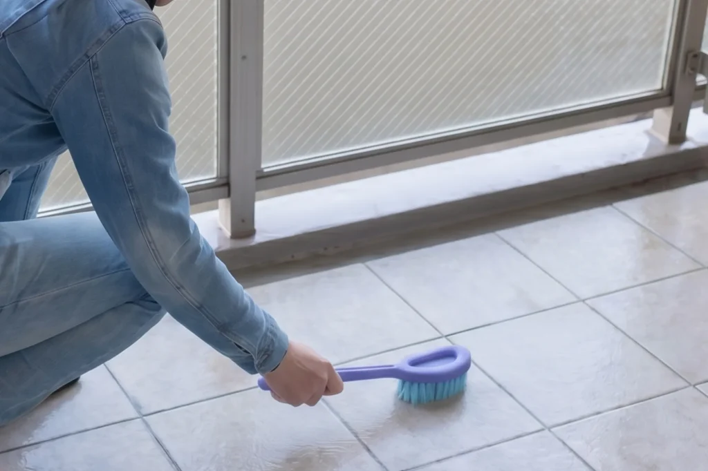 掃除のポイントは中性洗剤でこすって少量の水で流すこと。強力な漂白剤や熱湯は、ベランダの防水層や塗装を傷めるリスクがあるため、使用する際は目立たない場所でテストするなど注意が必要です。