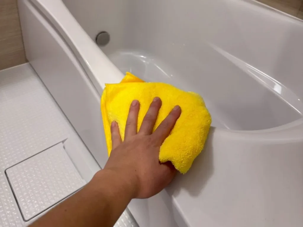 この時、大切なのは洗った後の水気をしっかり拭き取ること。せっかく綺麗に掃除したのに水滴が残っていると、水垢の原因になってしまいます。